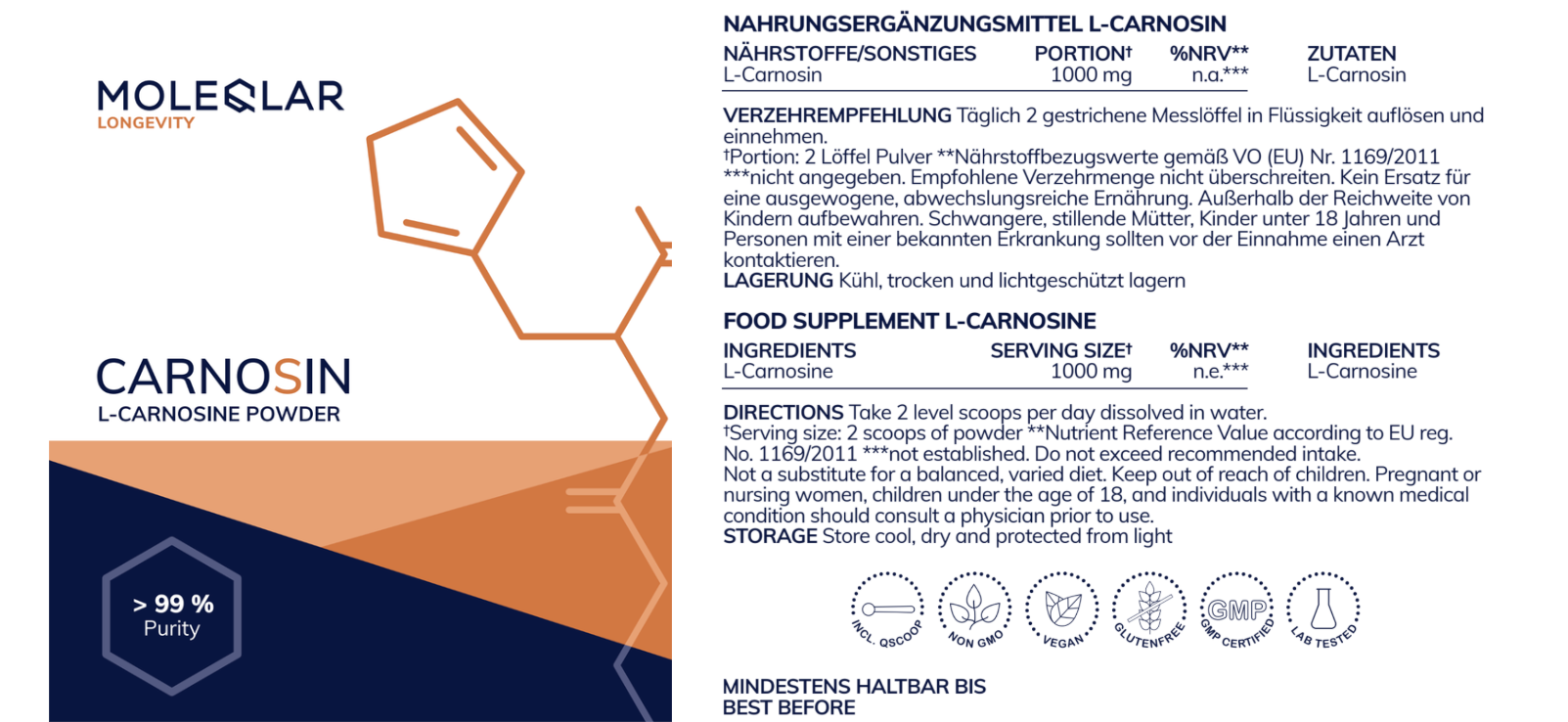 - One sachet of carnosine (30 grams) is equivalent to one 30-day supply (One serving = 1 gram)