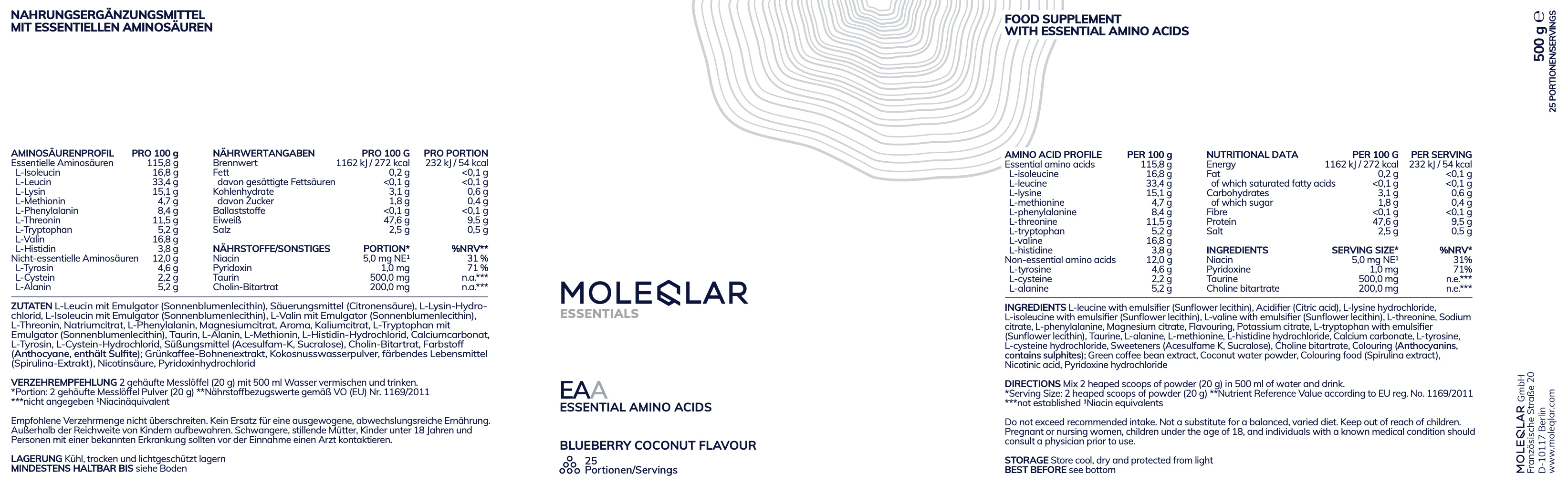 - One sachet of EAA powder (500 grams) is equivalent to one Supply for 25 days (One serving = 20 grams)
