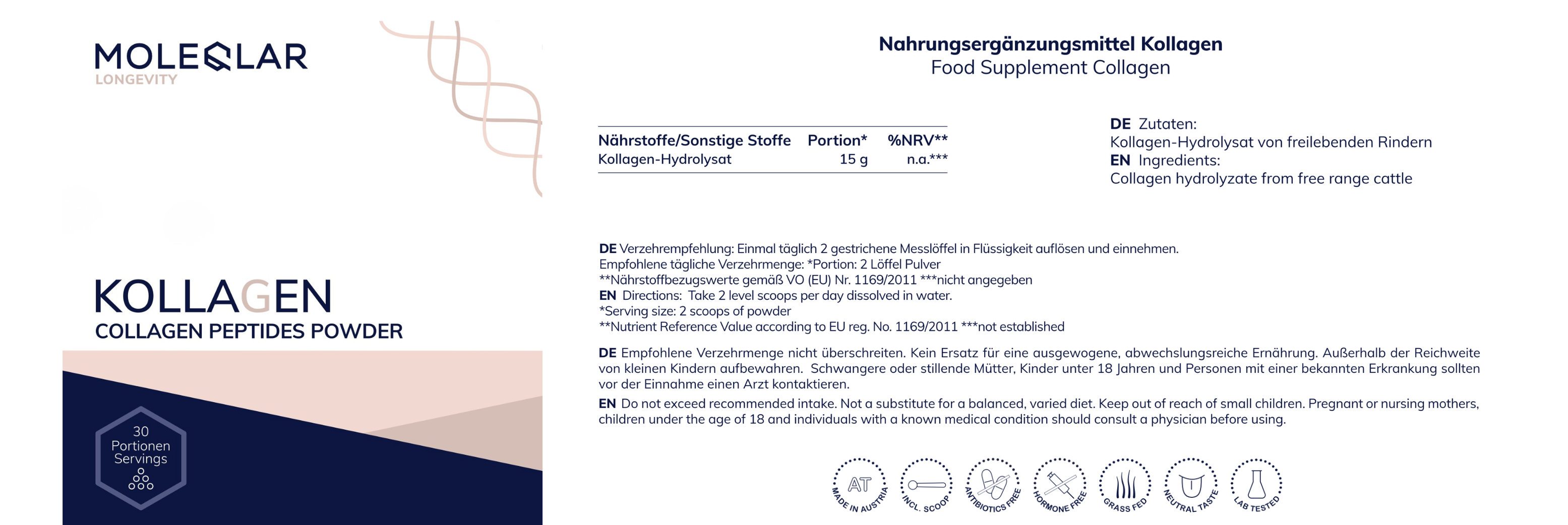 Die MOLEQLAR "Clean Product & Label" Philosophie stellt sicher, dass jedes Produkt in bester Qualität bei dir ankommt. Jede einzelne Charge durchläuft eine umfassende und an das Produkt angepasste Reinheits- und Rückstandsanalyse (Schwermetalle, Mikrobiologie, Pestizide).
