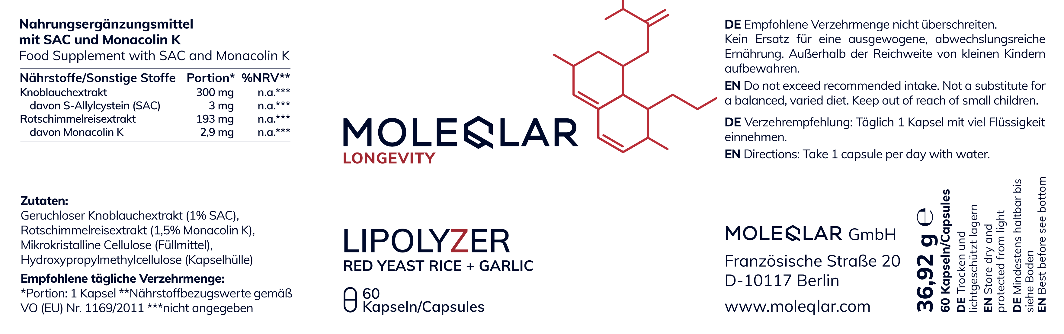 - 2,9 mg Monacolin K und 3 mg S-Allyl-Cystein (SAC) pro Kapsel